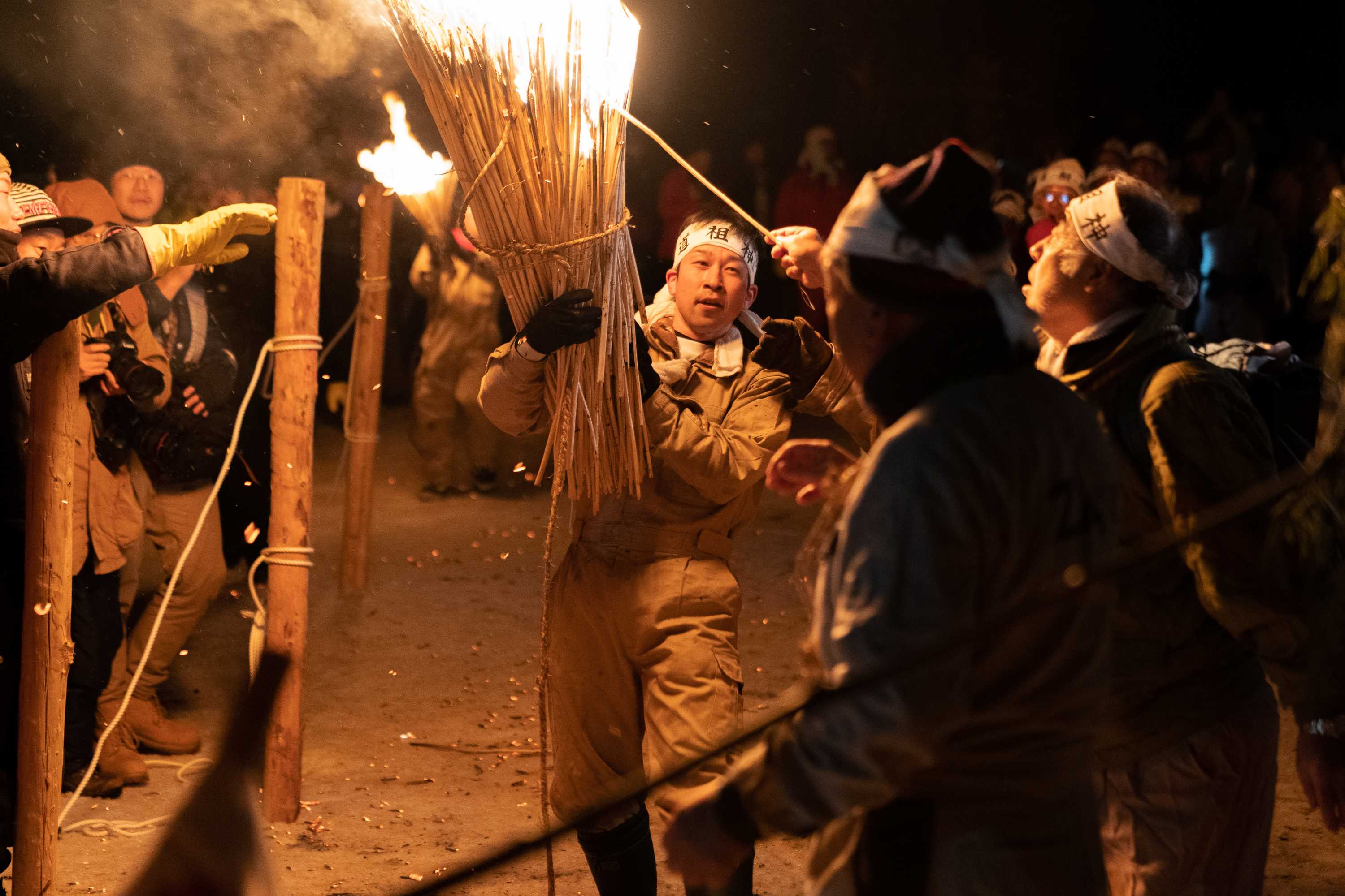 Słynny festiwal ognia, podczas którego 65-metrowa świątynia zbudowana przez 25- i 42-letnich mężczyzn (w Japonii uważana za pechowy wiek) jest spalana jako rytuał oczyszczenia, który przygotowuje ludzi na nadchodzący rok. Później, po intensywnym piciu sake, 25-latkowie, uzbrojeni w sosnowe gałęzie, bronią świątyni przed atakiem starszych mężczyzn, którzy dzierżą pochodnie rozpalone od świętego ogniska.