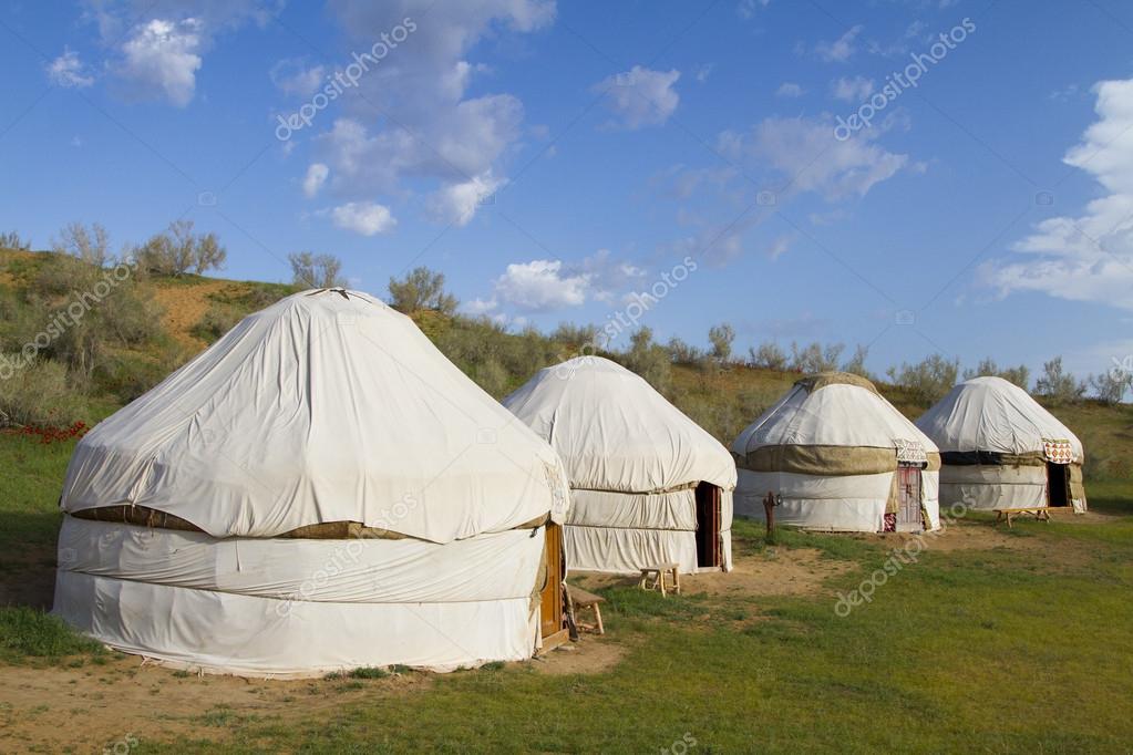 Z wyglądu przypominają miskę odwróconą do góry dnem. Z wierzchu pokryte są tkaniną, często zdobioną. Na szczycie posiadają otwór dymny, przez który dziś wyglądają kominy piecyków. Składają się z 5 lub więcej ścianek, wiązanych paneli, które po rozłożeniu dają cylindryczną ścianę. Na ścianach układano składany dach, obciągnięty płótnem lub skórą, uginający się pod wpływem wiatru.