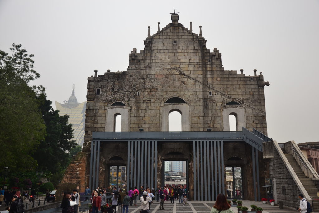 Pierwsza świątynia powstała w 1580 roku, jednak została zniszczona przez pożary w latach 1595 i 1601. W 1602 roku rozpoczęto odbudowę gmachu według projektu włoskiego jezuity Karola Spinoli. W pracach budowlanych brali udział głównie chrześcijańscy rzemieślnicy z Japonii, którzy uciekli przed prześladowaniami w kraju. Kościół został ukończony w 1637 roku i stanowił wówczas największą świątynię katolicką w Azji Wschodniej. Budynek trzykrotnie stawał w płomieniach, największe straty spowodował ostatni pożar, do którego doszło 1 stycznia 1835 na skutek tajfunu. Ogień zniszczył niemal całą świątynię z wyjątkiem przedniej fasady i kamiennych schodów przed kościołem, które zachowały się do dziś.