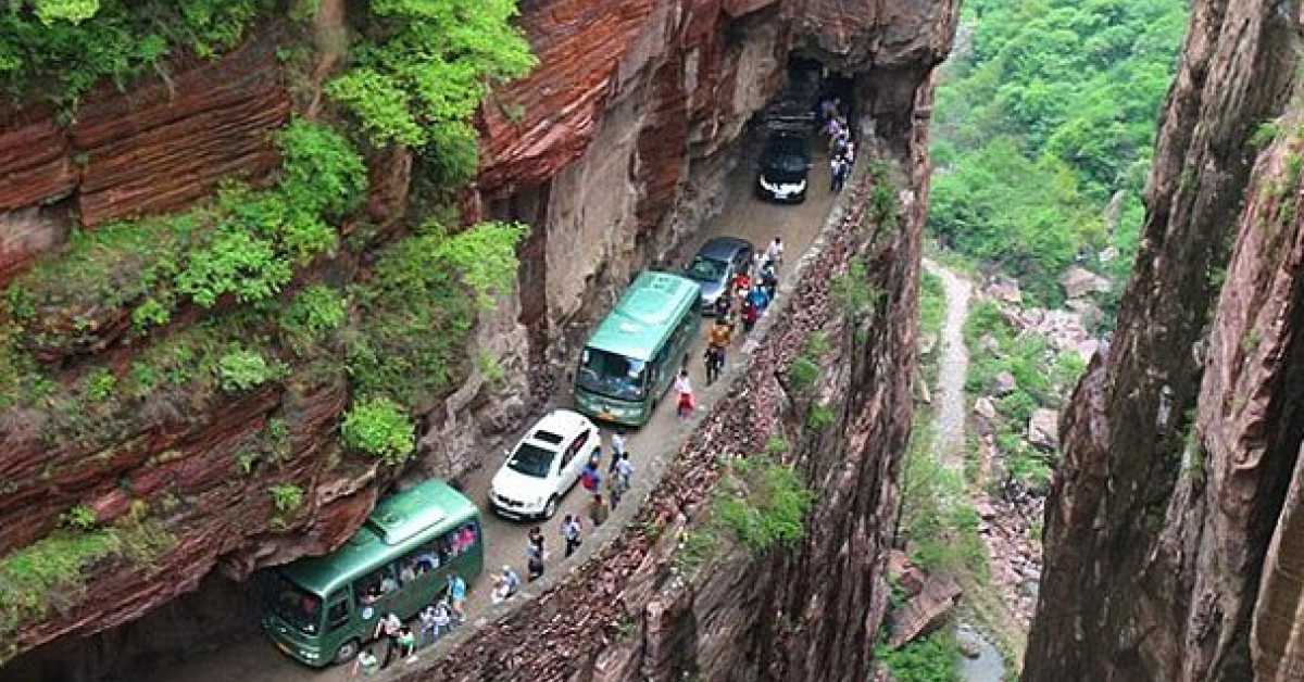 Podczas budowy zginęło kilku mieszkańców wsi, a sama droga jest wystarczająco szeroka, aby umożliwić bardzo powolne i ostrożne wyprzedzanie nadjeżdżających samochodów. Przerażające jest to, że droga została zbudowana po linii najmniejszego oporu. Tunel wije się, zakręca i opada w nieprzewidywalnych miejscach, na tyle, że każdy kierowca będzie oszołomiony z przerażeniem na myśl o tym, co może ich spotkać w śliskim martwym punkcie zakrętu. Co ciekawe w tunelu nie ma oświetlenia, a widoczność zapewniają jedynie wydrążone w skałach „okna”.Przejazd przez tunel Guoliang jest niezwykle niebezpieczny ze względu na panujący tam półmrok, oraz brak jakichkolwiek zabezpieczeń. Tunel jest jedyną drogą łączącą wioskę Guoliang z resztą świata.