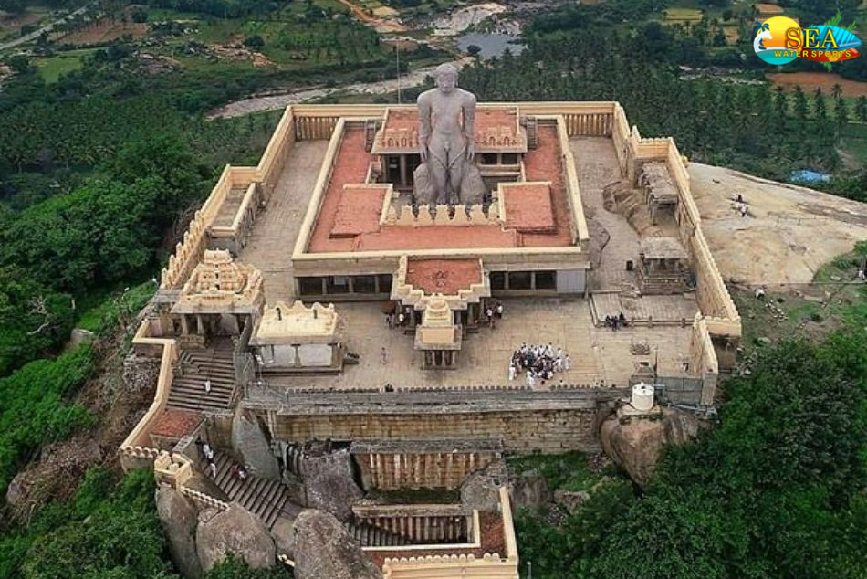 Pomnik Gommateshwary jest poświęcony postaci dżinizmu Bahubali i symbolizuje dżinistyczne zasady pokoju, niestosowania przemocy, poświęcenia spraw doczesnych i prostego życia. Został zbudowany około 983 roku n.e. za panowania zachodniej dynastii Gangesu i jest jednym z największych wolnostojących posągów na świecie. Do 2016 roku był uważany za najwyższy posąg Jaina. Odwiedzający muszą wspiąć się na 614 stopni, aby dotrzeć na szczyt wzgórza, na którym znajduje się posąg. Posąg Gomateshwary jest widoczny z odległości 30km.