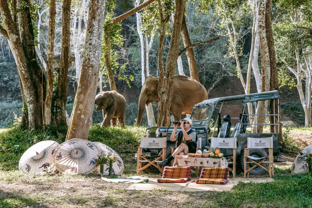 Hotel Anantara Golden Triangle Elephant Camp & Resort znajduje się przy granicy Tajlandii, Laosu i Birmy, na urokliwym wzgórzu z widokiem na rzeki Mekong i Ruak. Ci, którzy mieli okazję odwiedzić to miejsce wspominają majestatyczny widok rozciągający się na każde z wymienionych państw. Oprócz niektórych podstawowych udogodnień takich jak SPA, siłownia, czy basen (z pięknym widokiem na dolinę i las) na gości hotelu czekają dodatkowe atrakcje, takie jak „Spacer z gigantami” (eng. Walking With Giants), podczas którego w towarzystwie słonia i jego opiekuna można przemierzyć dżunglę otaczającą ośrodek. Innymi ciekawymi atrakcjami są m.in piknik w towarzystwie słoni, czy ELE (Elephant learning experience) – tu towarzystwie weterynarza lub biologa można dowiedzieć się więcej o tych ogromnych i niezwykle inteligentnych ssakach. Hotel współpracuje z fundacją Golden Triangle Asian Elephant Foundation, zatem jakiekolwiek przejażdżki na grzbiecie słonia są zabronione.
