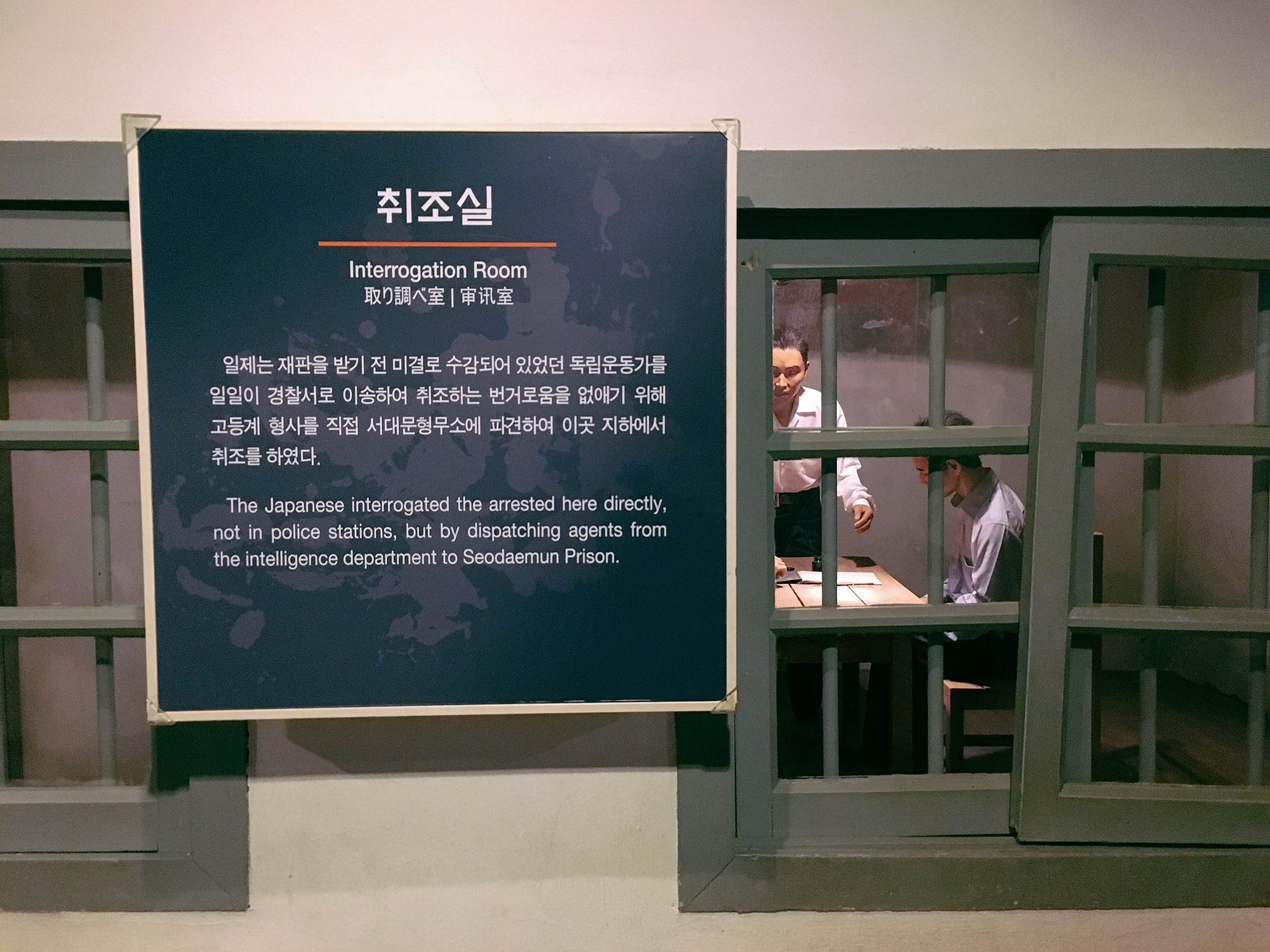 Więzienie Seodaemun zostało zbudowane w 1908 roku głównie dla więźniów „politycznych”, termin ten obejmuje bojowników o wolność, aktywistów i demonstrantów, ale także tych nieszczęsnych zwykłych ludzi, którzy na przykład nie przyjęli japońskiego nazwiska. Po uwięzieniu więźniowie byli wcielani do pracy przymusowej i poddawani niewypowiedzianie nieludzkim warunkom. Wielu więźniów w Seodaemun było torturowanych, a niektórzy nawet straceni, ich ciała usuwano z terenu więzienia za pomocą „tunelu do usuwania zwłok” za salą egzekucji.