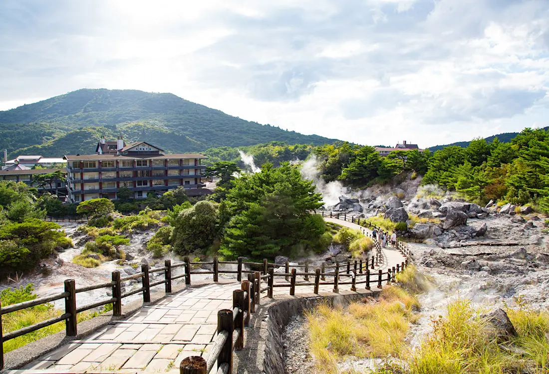 Po mieście rozsiane są jigoku – piekła, które karmią i ogrzewają onseny. Te nieziemskie, szare, skalne pokłady, z których wydobywa się siarkowy gaz, stanowią ostry kontrast dla idyllicznego krajobrazu miasta i zalesionych gór. Podążanie krętą ścieżką przez okolicę to godzinny, relaksujący spacer, podczas którego można zobaczyć ten wyjątkowy krajobraz z bliska, podziwiać widoki na miasto, a nawet zatrzymać się na lokalny cydr Unzen i tamago onsen – jajko ugotowane na twardo w siarkowych wodach jigoku.